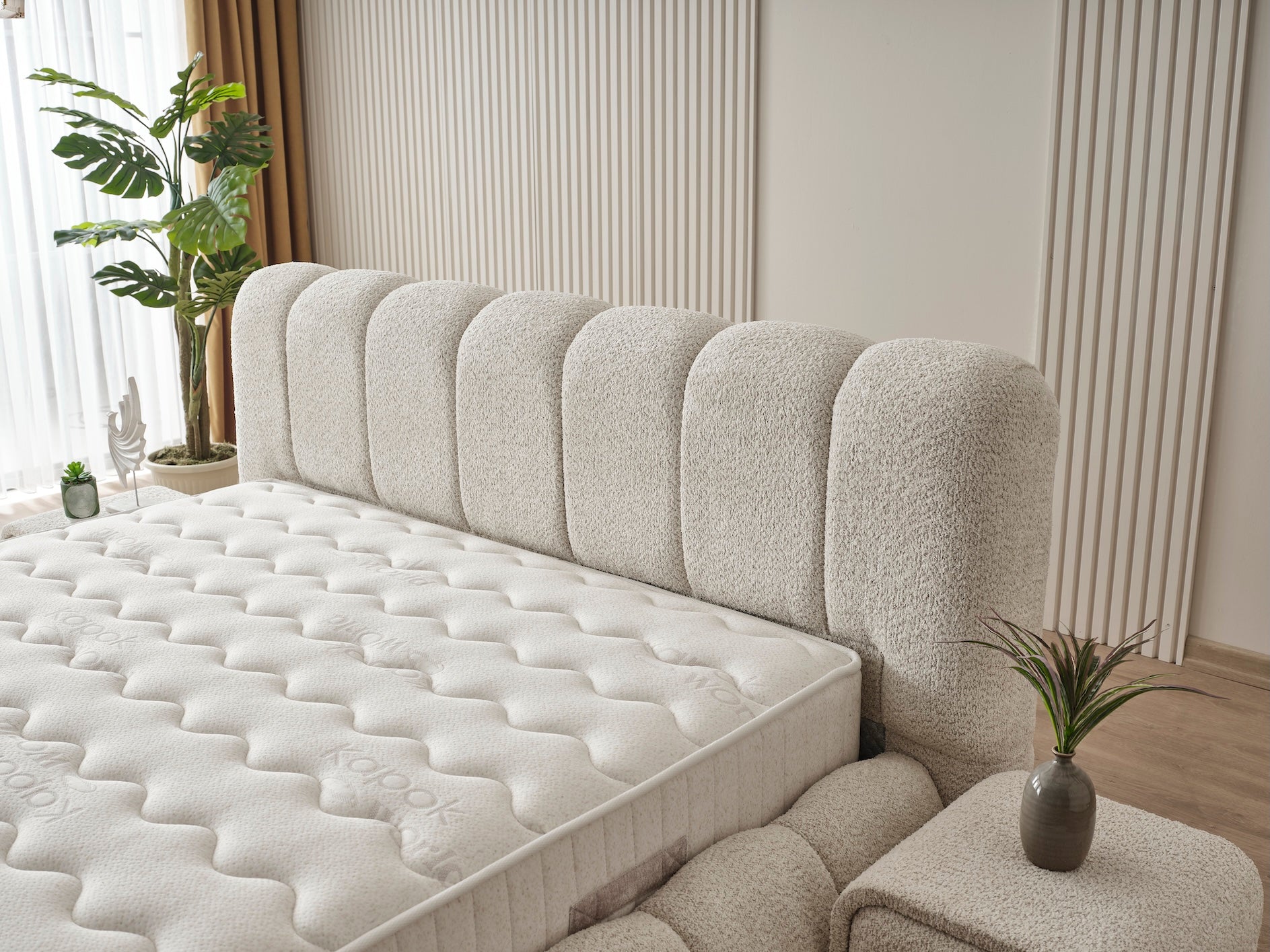 Gør sengen til hjemmets mest funktionelle fristed med en TV-gavl, hvor skærmen elegant gemmes væk, når den ikke er i brug. TV-gavlen placeres ved fodenden og rummer et integreret system, der lader dit TV køre op og ned med et tryk – så du kan nyde film og serier direkte fra sengen, uden at det forstyrrer det rolige udtryk i rummet. En stilfuld og gennemtænkt løsning, der kombinerer frihed, design og teknologi i ét.